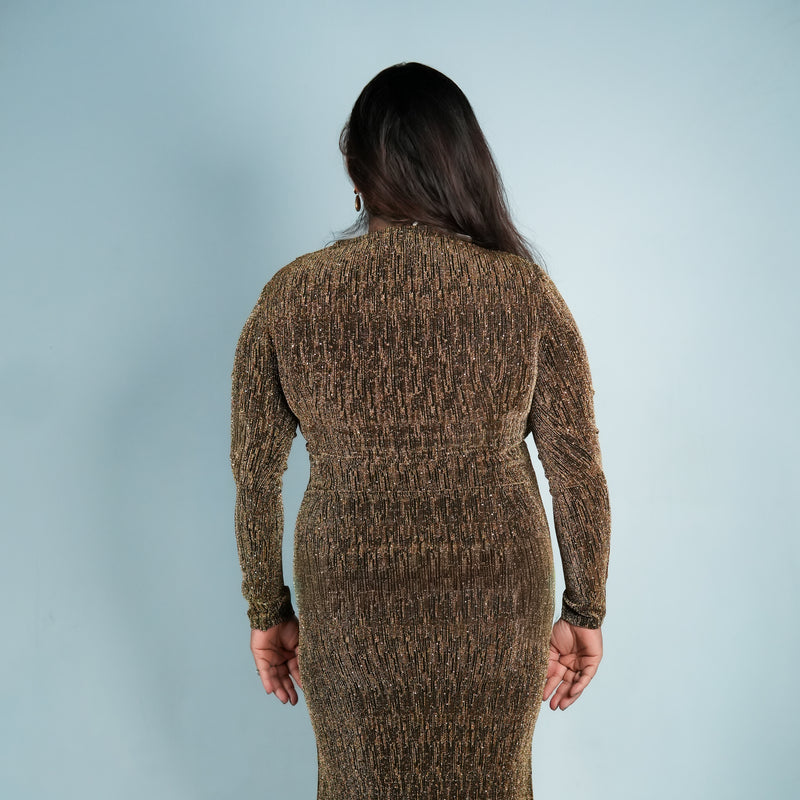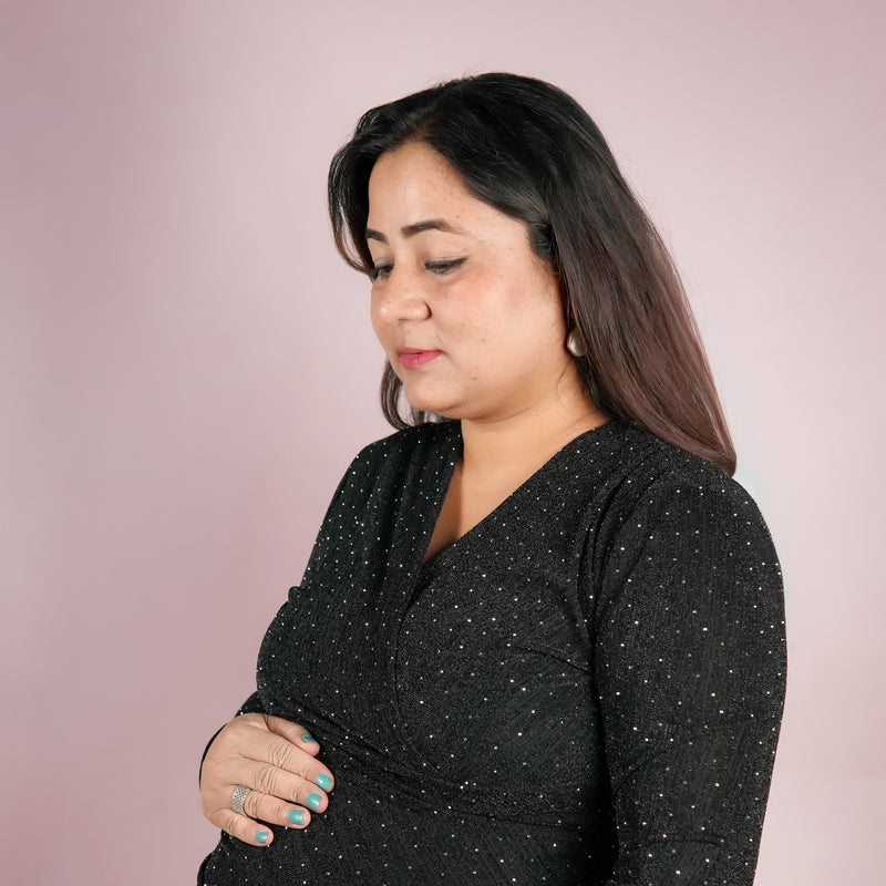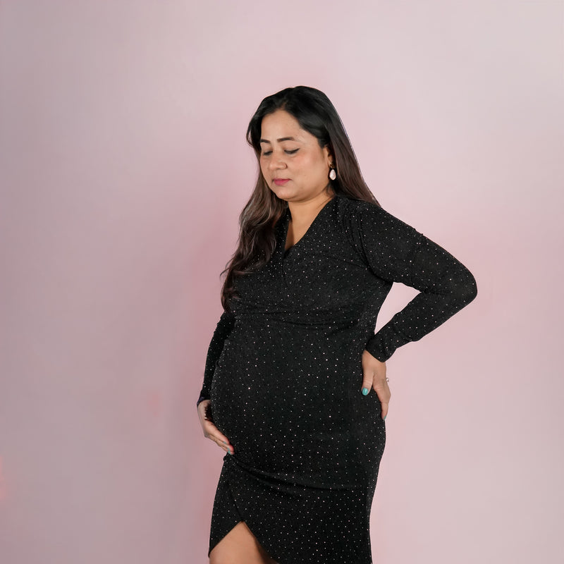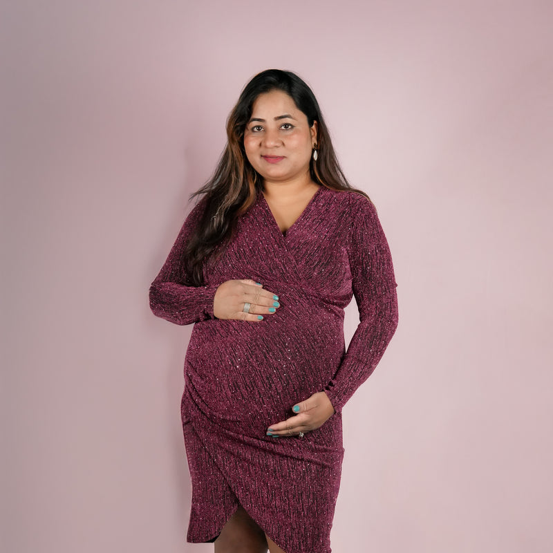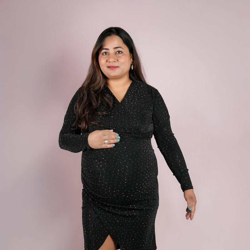 Antique gold shimmer psrty dress designed for expecting mothers , featuring a subtle shimmer finish, its perfect for parties, baby shower and paerfect for outings too!.*perfect for all trimisters*bump-friendly stretchable fabric